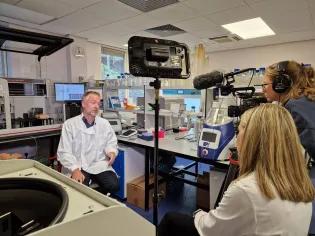 Viking Genes image archive. Doorway 3, the Old Medical School, Teviot Place, Edinburgh (where we project-led the Orkney Complex Disease Study (ORCADES) and the Viking Health Study - Shetland (VIKING I) Professor Jim Flett Wilson in the Scottish isles Professor Jim Flett Wilson filming with BBC Scotland in 2024 (BRCA2 finding in Whalsay, Shetland) Viking Genes validating variants for return of results in 2023 Dr Shona Kerr and Professor Jim Flett Wilson picking plasma Lab scientist Camilla during the process to validate actionable variants Professor Jim Flett Wilson meeting Torcuil Crichton MP at Westminster in November 2024 Professor Jim Flett Wilson meeting Alistair Carmichael MP at Westminster in November 2024 Looking to the Berry, Hoy, Orkney Da Lang Ayre, Northmavine, Shetland Sunset at the Standing Stones of Stenness, Orkney Runic graffiti, Maeshowe Neolithic chambered tomb, Stenness, Orkney Callanish Standing Stones, Lewis Scarista Beach looking to the Harris hills, Isle of Harris Pulse wave analysis in the ORCADES study, Kirkwall, Orkney, in 2010 Prof Jim Flett Wilson's pulse wave analysis – left, the radial (forearm) pulse; right, the derived central (aortic) waveform – pressure versus time, showing the augmentation index, and other traits relating to arterial stiffness. ORCADES clinic, Victoria St, Kirkwall, Orkney, with Ba' (mass ball game) barricades Christmas 2009 Kirkwall ba' game Okney Complex Disease Study (ORCADES) mobile clinic van in Sanday, Orkney in 2006 Our nurse Linda was also the aerodrome marshal, in Westray, Orkney – bloods were flown to the hospital lab in Kirkwall every day for biochemistry measurements. The late Stewart and Annie Thomson, Shirva, Fair Isle, Shetland - both participants in Viking Genes Hannah Stout and Jimmy Wilson playing the accordion, Fair Isle, Shetland - coronation day 1937 Jim Wilson Research Group 2017 – Xia Shen, David Clark, Peter Joshi, Jim Wilson, Nicola Pirastu, Francisco Camino-Ceballos, Kat Kentistou, Kate Schraut, Paul Timmers, Katie Barnes For access to other images, please email at viking@ed.ac.uk and we'll respond as soon as we can. This article was published on 2024-08-14